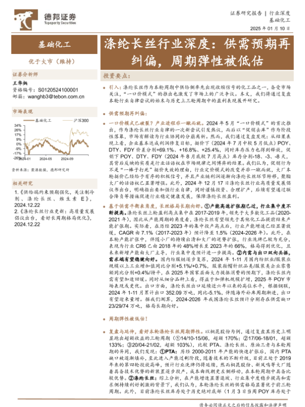 【德邦证券】【20250110】涤纶长丝行业深度:供需预期再纠偏,周期弹性被低估-24页