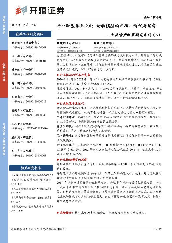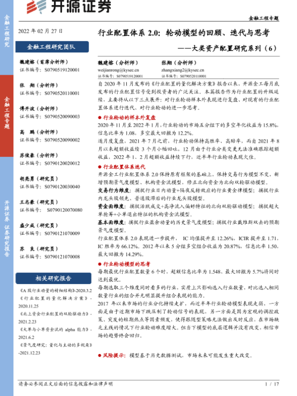 【开源证券】【20220227】大类资产配置研究系列(6):行业配置体系2.0,轮动模型的回顾、迭代与思考-17页