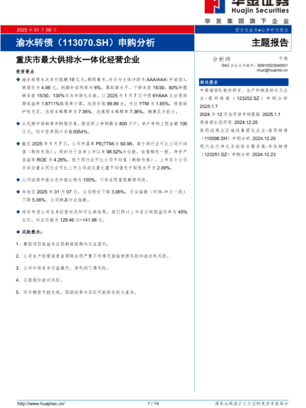 【华金证券】【20250109】渝水转债(113070.SH)申购分析:重庆市最大供排水一体化经营企业-14页
