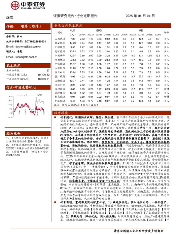 【中泰证券】【20250104】煤炭行业:短期供应收缩,煤价止跌企稳-23页