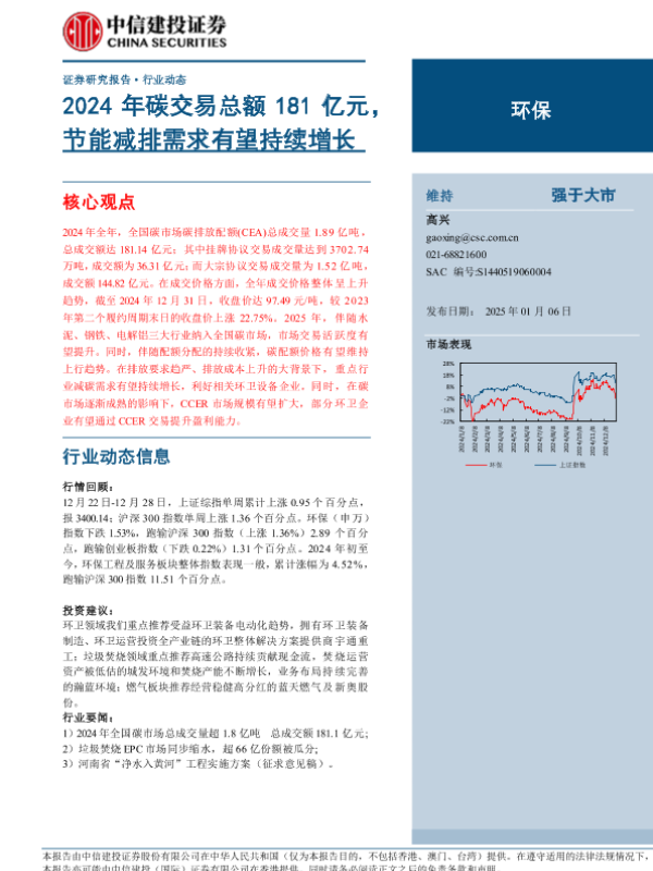 【中信建投证券】【20250106】环保行业:2024年碳交易总额181亿元,节能减排需求有望持续增长-11页