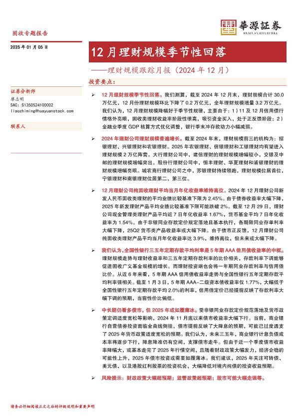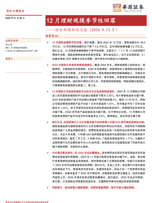 【华源证券】【202412】理财规模跟踪月报(2024年12月):12月理财规模季节性回落-11页