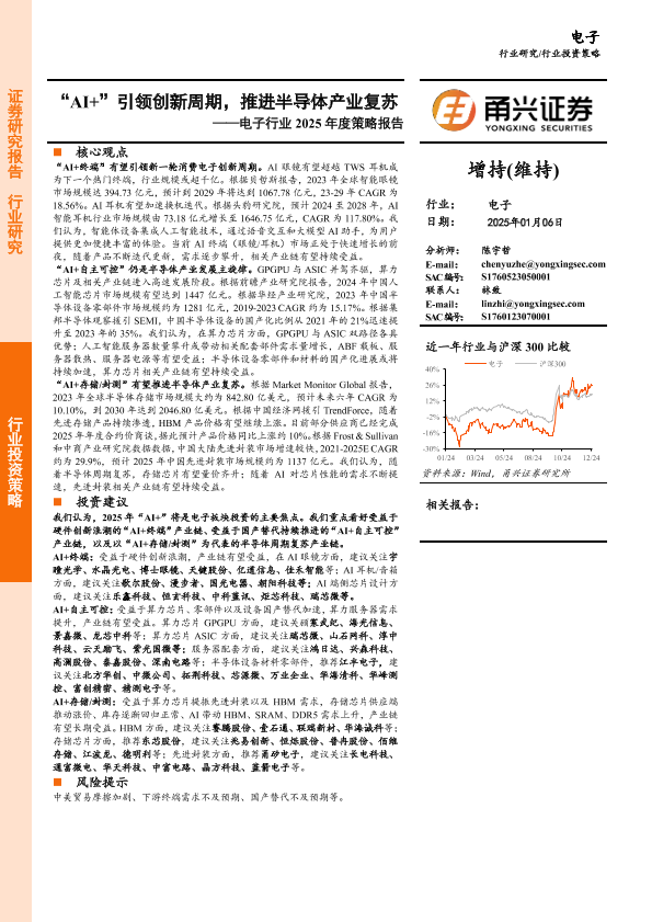 【甬兴证券】【20250106】电子行业2025年度策略报告:“AI%2b”引领创新周期,推进半导体产业复苏-27页