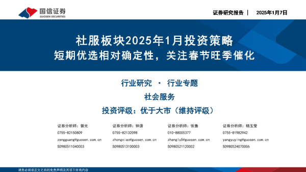 【国信证券】【20250107】社服行业板块2025年1月投资策略:短期优选相对确定性,关注春节旺季催化-19页