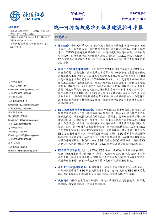 【海通证券】【20250108】策略季报:统一可持续披露准则体系建设拉开序幕-20页