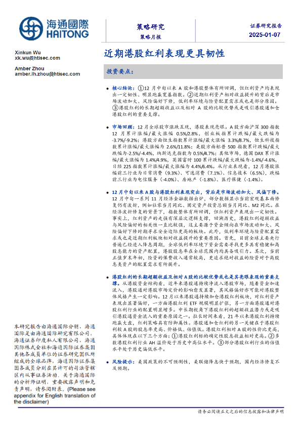 【海通国际】【20250107】策略月报:近期港股红利表现更具韧性-16页