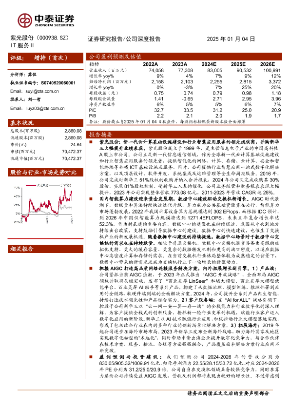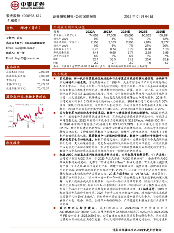【中泰证券】【20250104】紫光股份(000938)把握“云网安算存端”全栈机遇,引领AI算力产业发展-30页