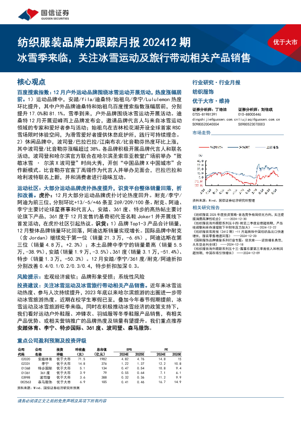 【国信证券】【202412】纺织服装行业品牌力跟踪月报202412期:冰雪季来临,关注冰雪运动及旅行带动相关产品销售-13页