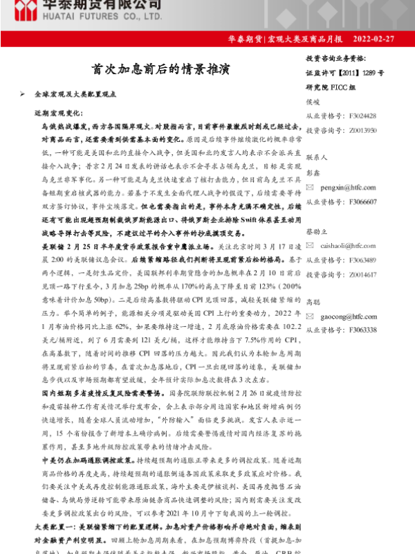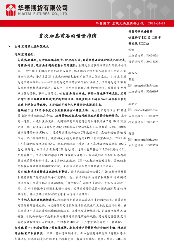 【华泰期货】【20220227】宏观大类及商品月报:首次加息前后的情景推演-27页
