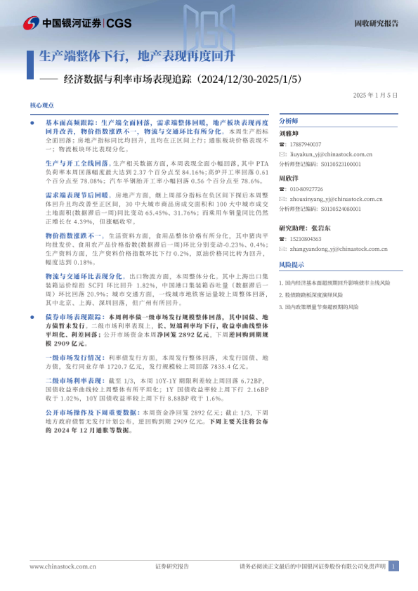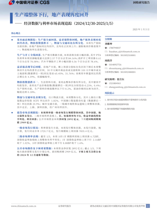 【银河证券】【20250105】经济数据与利率市场表现追踪:生产端整体下行,地产表现再度回升-12页