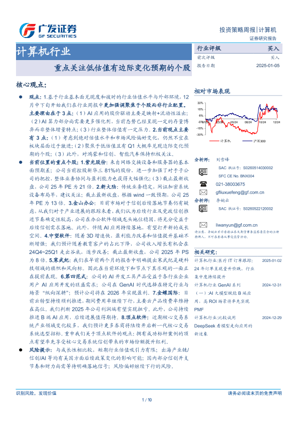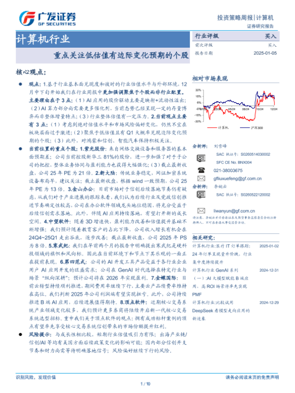 【广发证券】【20250105】计算机行业:重点关注低估值有边际变化预期的个股-10页