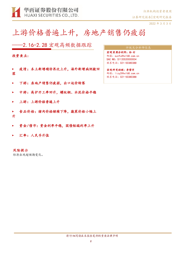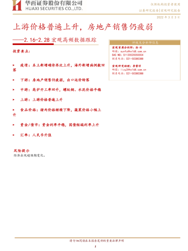 【华西证券】【20220303】宏观高频数据跟踪:上游价格普遍上升,房地产销售仍疲弱-15页