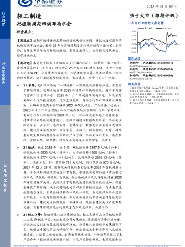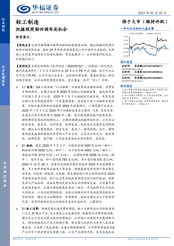 【华福证券】【20250105】轻工制造行业定期报告:把握顺周期回调布局机会-20页