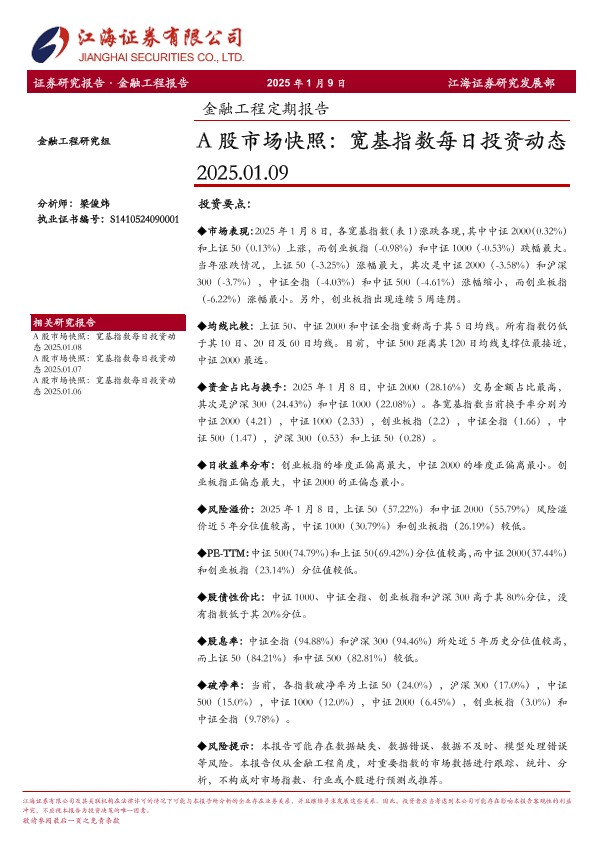 【江海证券】【20250109】金融工程定期报告:A股市场快照,宽基指数每日投资动态-13页