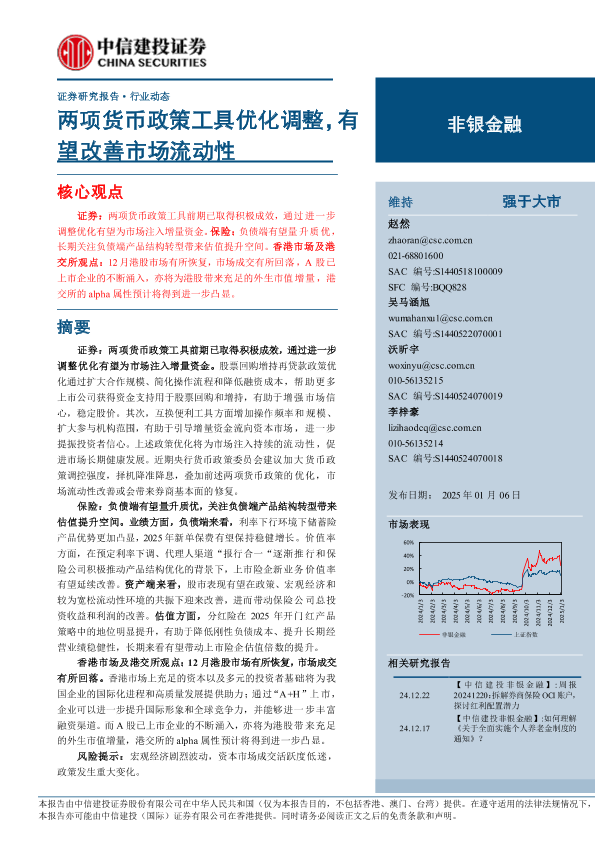 【中信建投证券】【20250106】非银金融行业:两项货币政策工具优化调整,有望改善市场流动性-25页