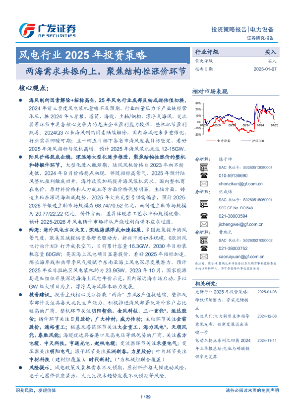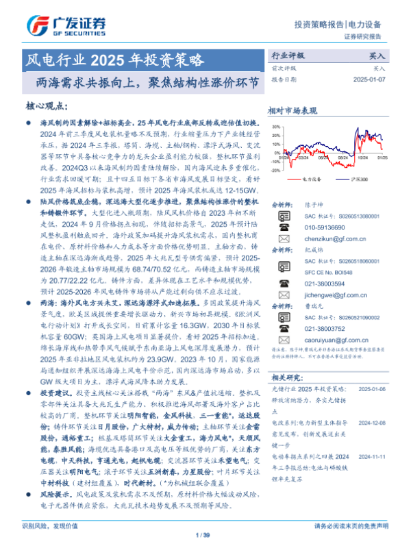 【广发证券】【20250107】风电行业2025年投资策略:两海需求共振向上,聚焦结构性涨价环节-39页