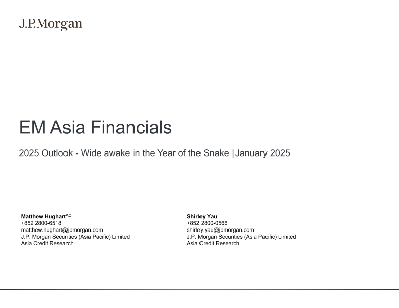 【J.P. Morgan】【202501】JPMorgan Econ FI-EM Asia Financials 2025 Outlook Presentation-16页