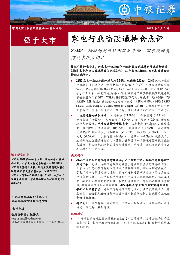 【中银证券】【20220303】家电行业陆股通持仓点评:22M2,陆股通持股比例环比下降,需求缓慢复苏成本压力仍在-19页