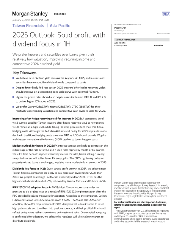 【Morgan Stanley】【2024】nley-Taiwan Financials 2025 Outlook Solid profit with dividend-15页
