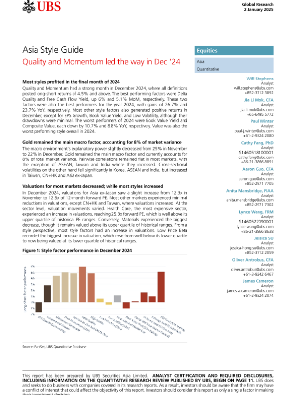 【UBS Securities Asia Limited】【20250102】ies-Asia Style Guide Quality and Momentum led the way in Dec 24-15页
