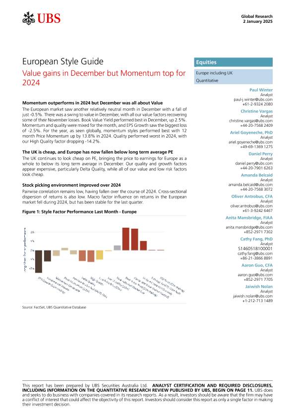 【UBS Securities Australia Ltd.】【20250102】European Style Guide _Value gains in December but Momentum top for 2024-15页