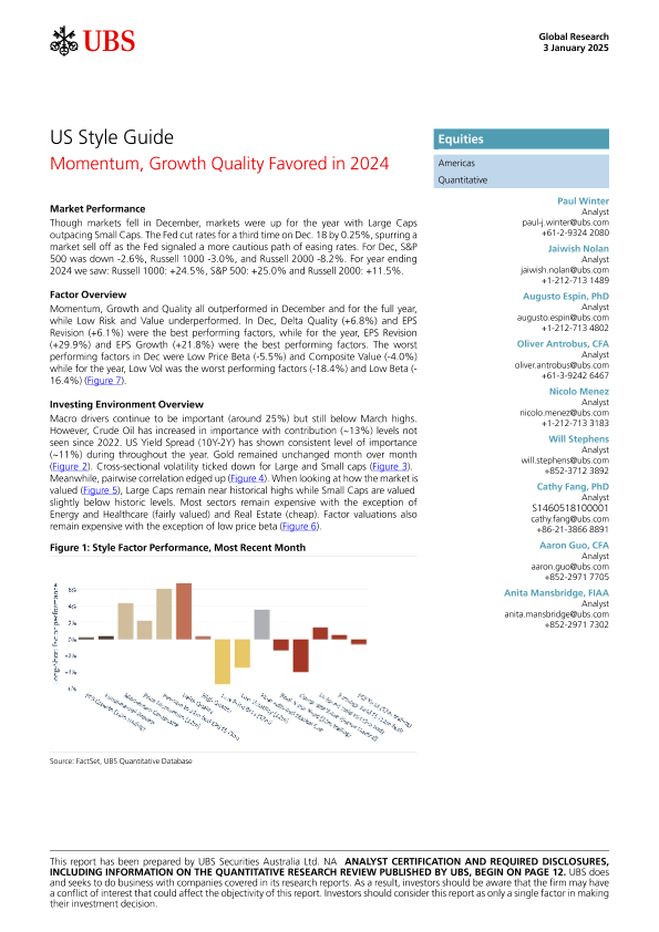 【UBS Securities Australia Ltd.】【20250103】US Style Guide Momentum, Growth Quality Favored in 2024-16页