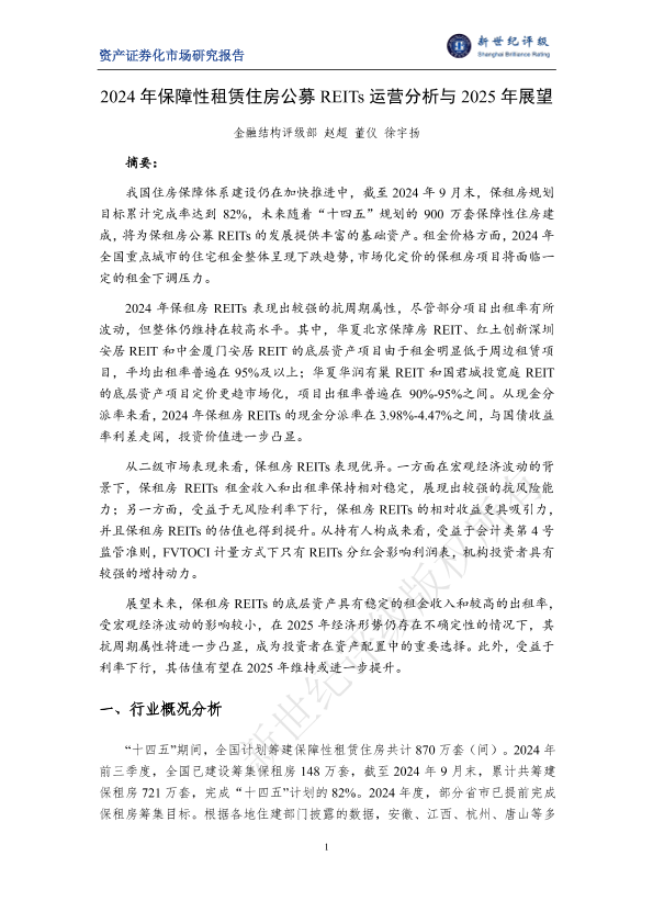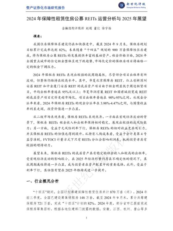 【金融结构评级部赵超董仪徐宇扬】【2024】2024年保障性租赁住房公募REITs运营分析与2025年展望-20页