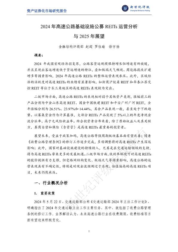 【金融结构评级部赵超罗佳瑜徐宇扬】【2024】2024年高速公路基础设施公募REITs运营分析与2025年展望-26页