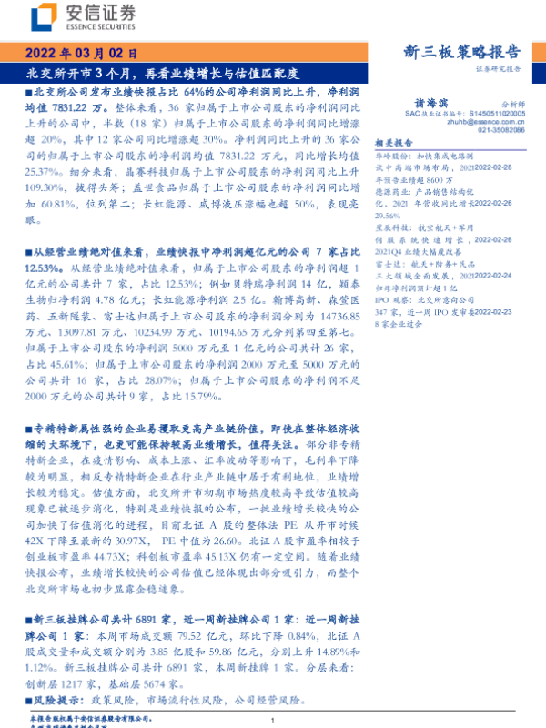 【安信证券】【20220302】新三板策略报告:北交所开市3个月,再看业绩增长与估值匹配度-21页
