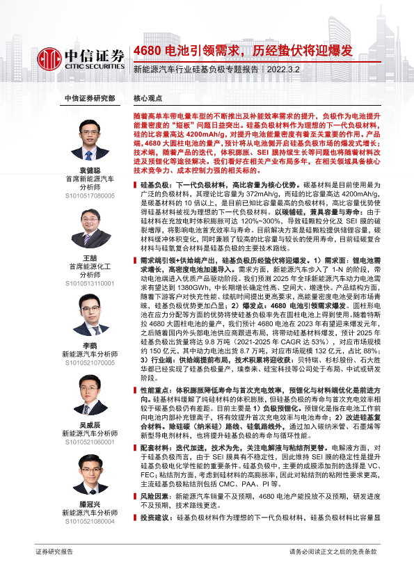 【中信证券】【20220302】新能源汽车行业硅基负极专题报告:4680电池引领需求,历经蛰伏将迎爆发-29页