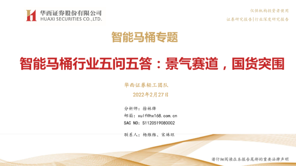 【华西证券】【20220227】智能马桶行业五问五答:景气赛道,国货突围-61页