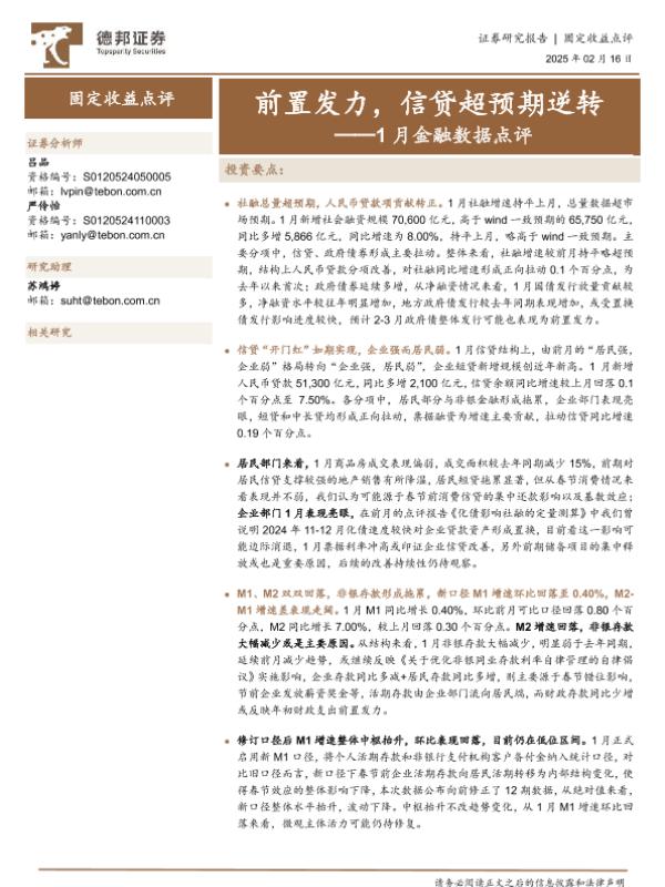 【德邦证券】【20250216】1月金融数据点评:前置发力,信贷超预期逆转-11页