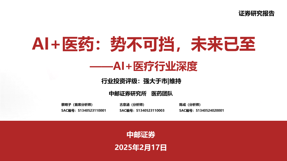 【中邮证券】【20250217】AI+医药:势不可挡,未来已至-36页