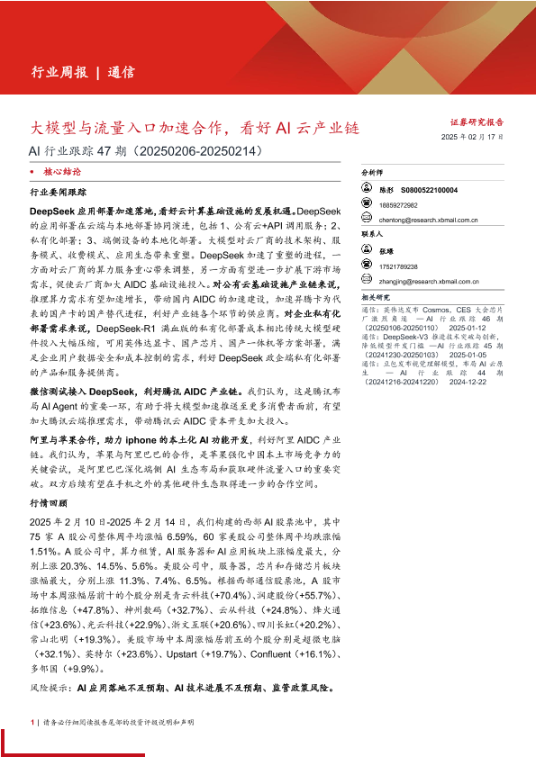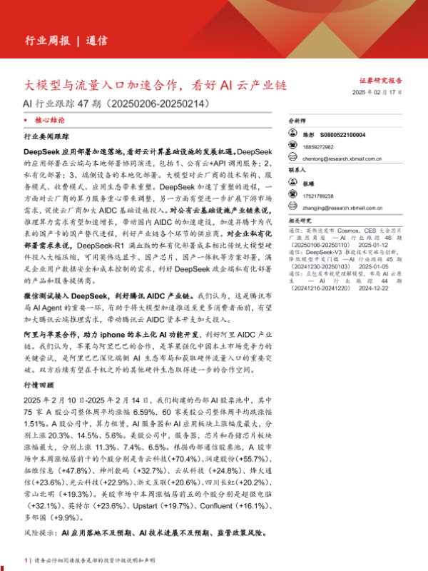 【西部证券】【20250217】AI行业跟踪47期:大模型与流量入口加速合作,看好AI云产业链-10页