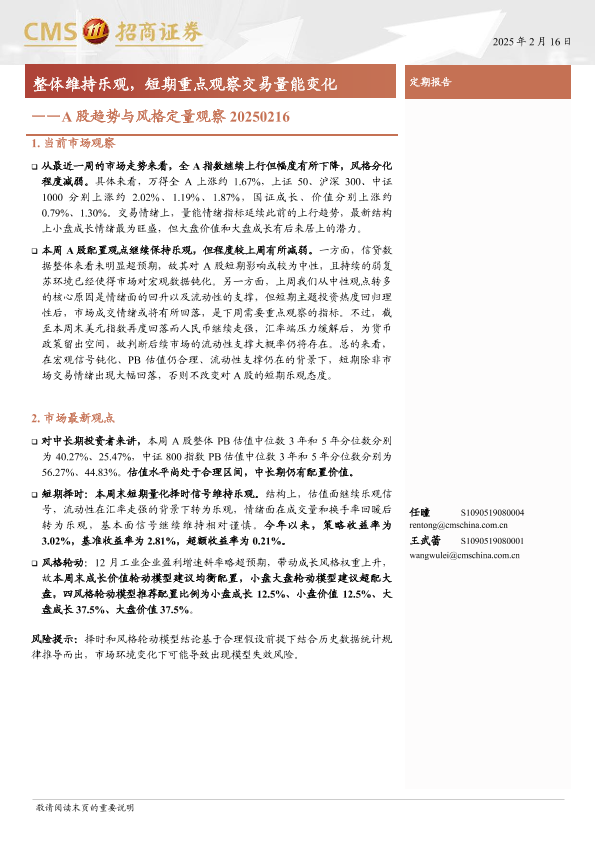 【海通证券】【20250216】A股趋势与风格定量观察:整体维持乐观,短期重点观察交易量能变化-10页