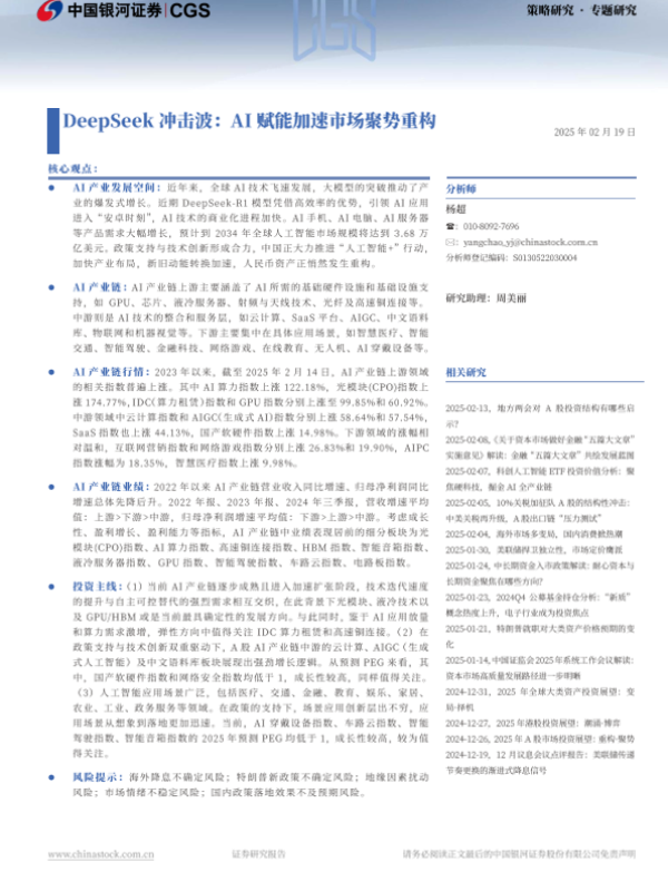 【银河证券】【20250219】Deepseek冲击波:AI赋能加速市场聚势重构-25页