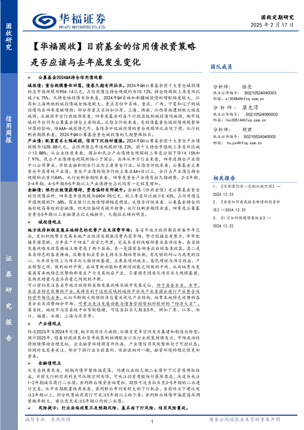【华福证券】【20250217】目前基金的信用债投资策略是否应该与去年底发生变化-30页