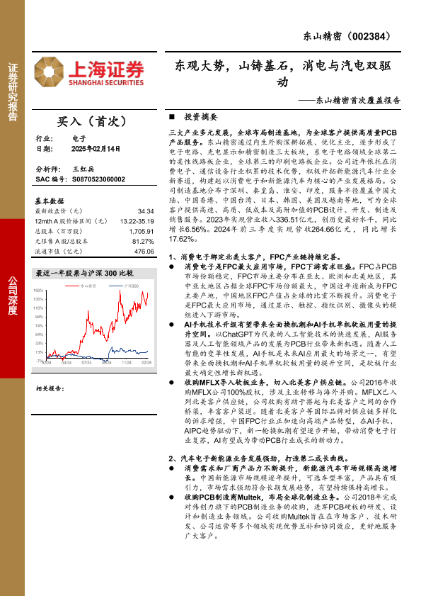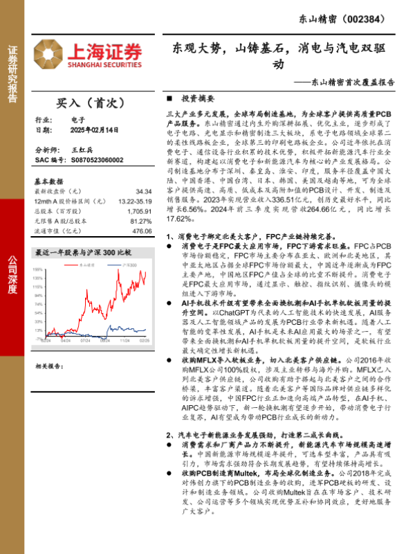 【上海证券】【20250214】东山精密(002384)首次覆盖报告:东观大势,山铸基石,消电与汽电双驱动-25页