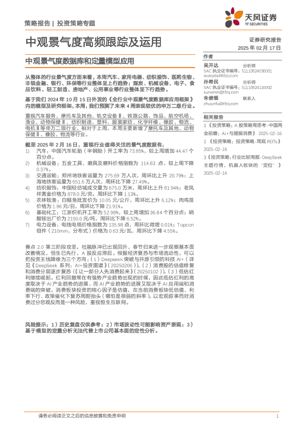 【天风证券】【20250217】中观景气度数据库和定量模型应用:中观景气度高频跟踪及运用-16页