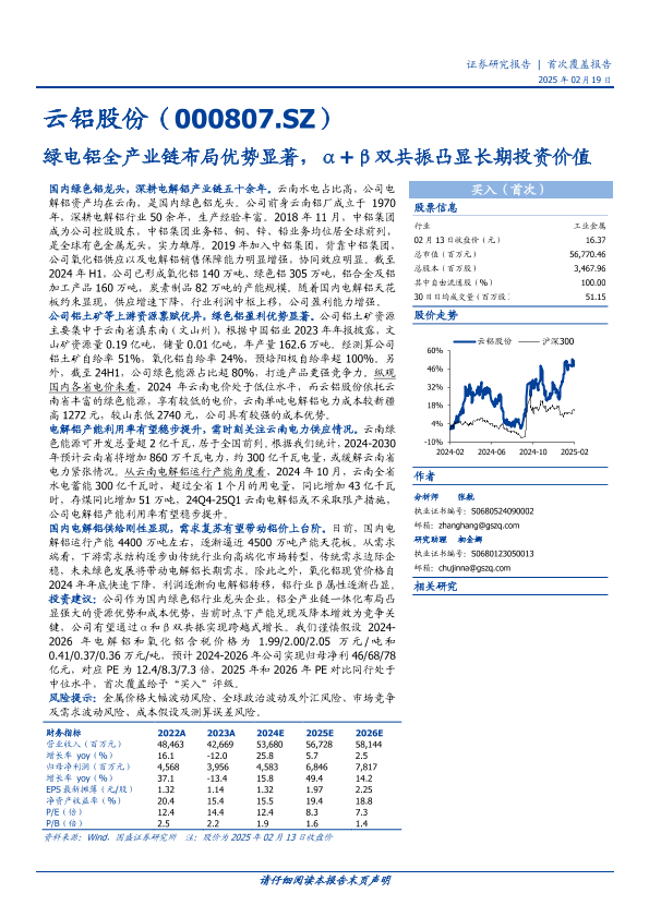 【国盛证券】【20250219】云铝股份(000807)绿电铝全产业链布局优势显著,α+β双共振凸显长期投资价值-63页