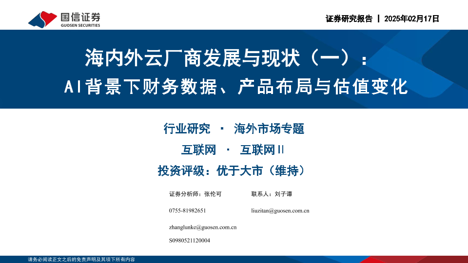 【国信证券】【20250217】互联网行业海内外云厂商发展与现状(一):AI背景下财务数据、产品布局与估值变化-40页