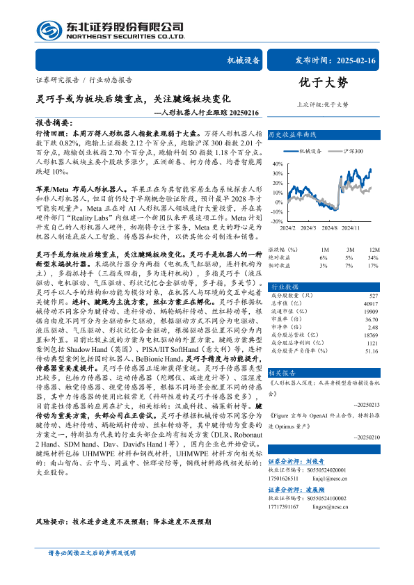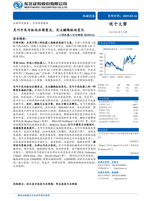 【东北证券】【20250216】人形机器人行业跟踪:灵巧手或为板块后续重点,关注腱绳板块变化-10页