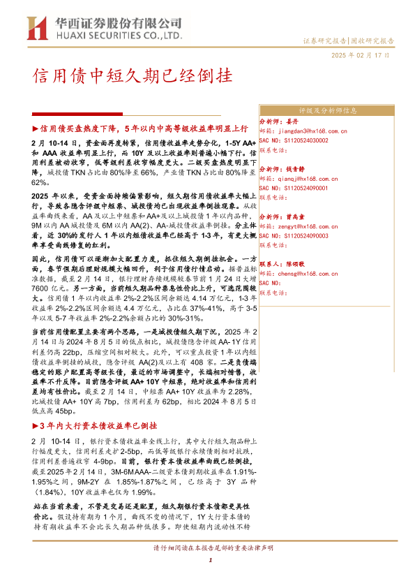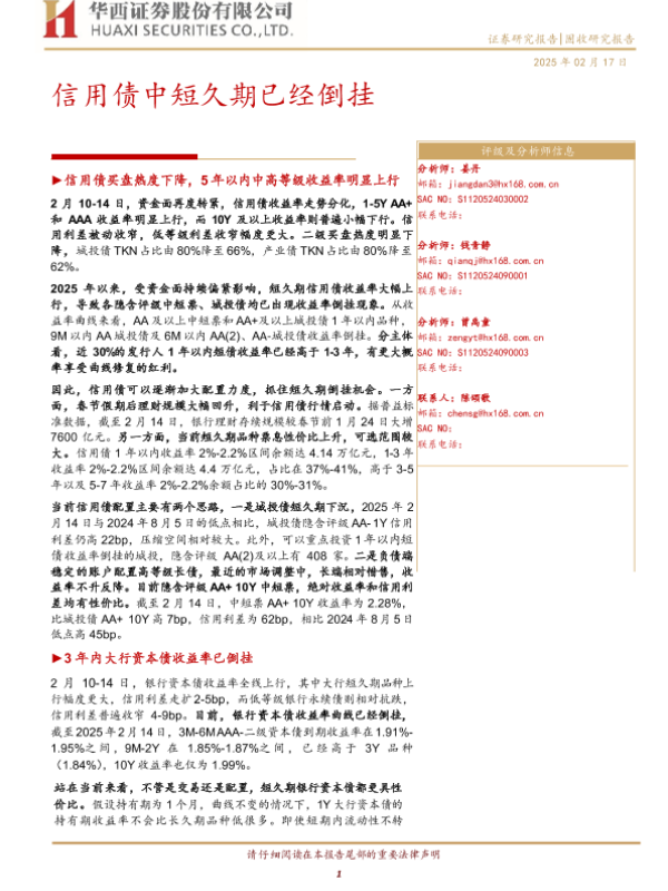 【华西证券】【20250217】信用债中短久期已经倒挂-18页
