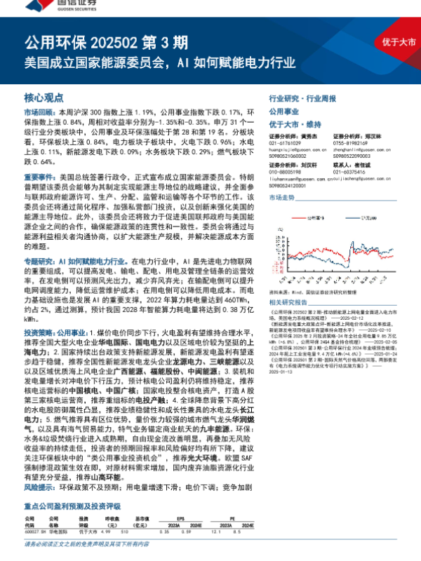 【国信证券】【20250219】公用环保行业202502第3期:美国成立国家能源委员会,AI如何赋能电力行业-30页
