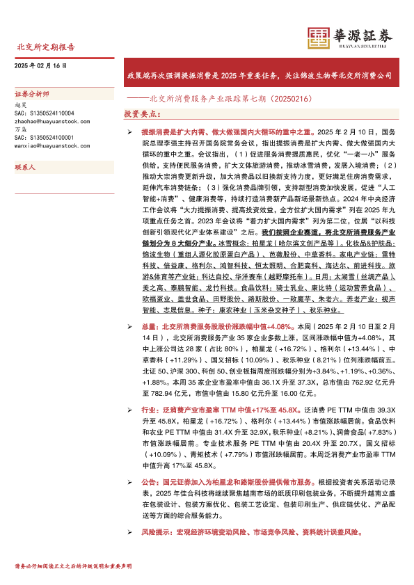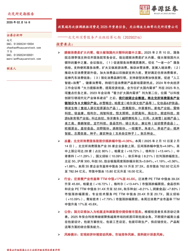 【华源证券】【20250216】北交所消费服务产业跟踪第七期:政策端再次强调提振消费是2025年重要任务,关注锦波生物等北交所消费公司-12页