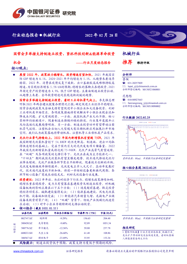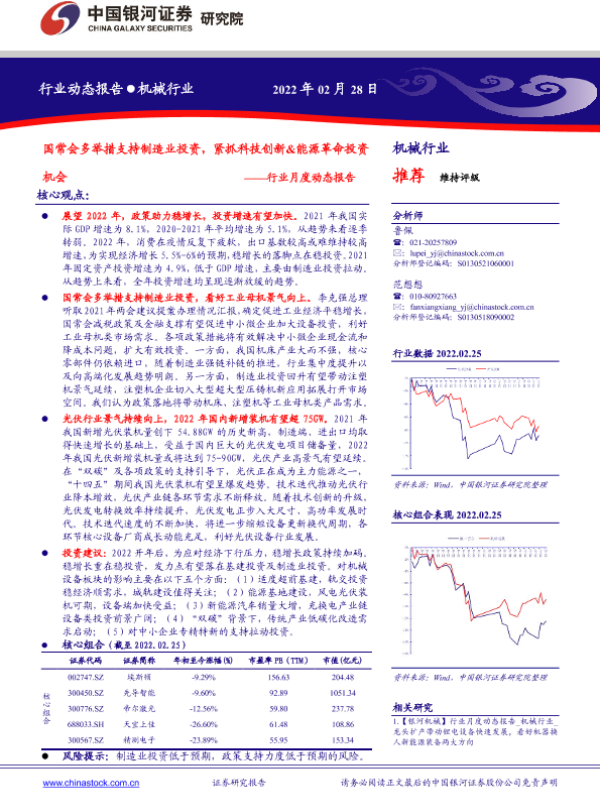 【银河证券】【20220228】机械行业月度动态报告:国常会多举措支持制造业投资,紧抓科技创新&能源革命投资机会-29页