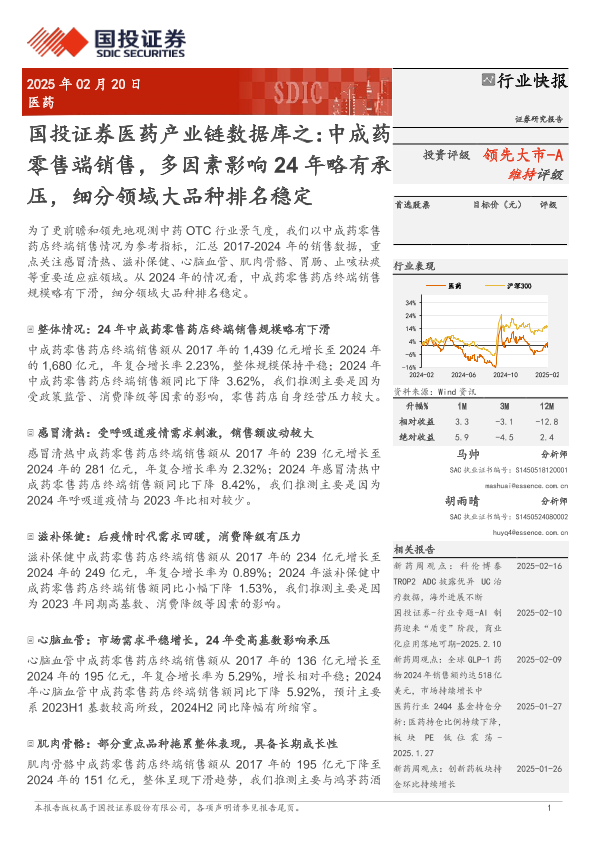 【国投证券】【20250220】医药行业产业链数据库之:中成药零售端销售,多因素影响24年略有承压,细分领域大品种排名稳定-13页