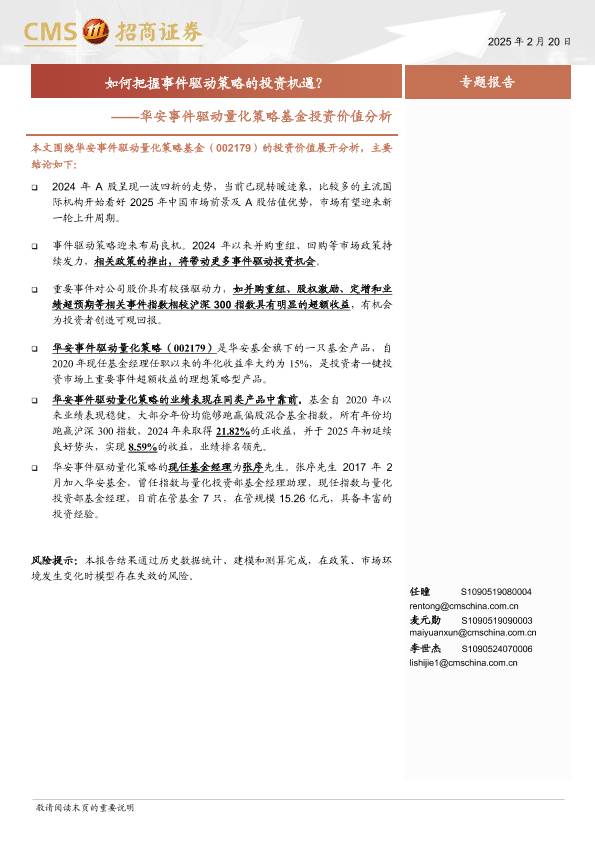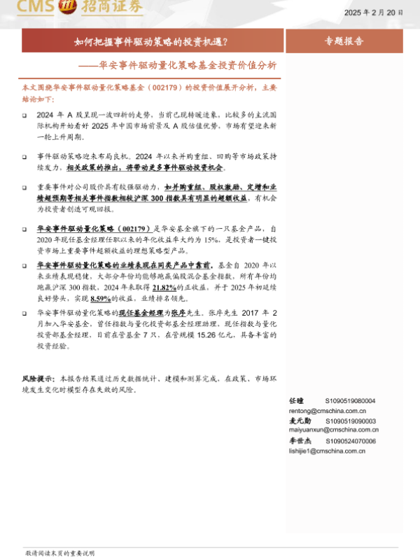 【海通证券】【20250220】华安事件驱动量化策略基金投资价值分析:如何把握事件驱动策略的投资机遇?-15页