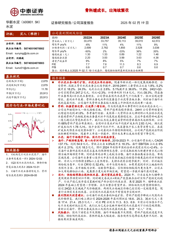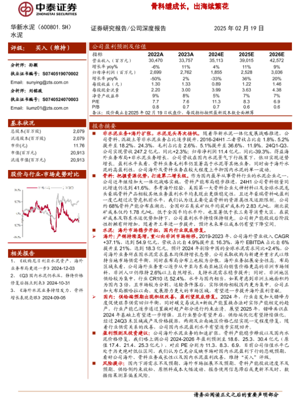 【中泰证券】【20250219】华新水泥(600801)骨料继成长,出海续繁花-25页