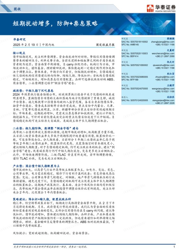【华泰证券】【20250219】固定收益月报:短期扰动增多,防御+票息策略-31页